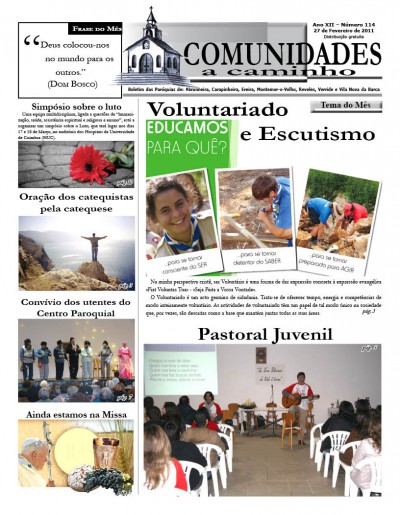 Comunidades a Caminho é um Jornal Paroquial das Comunidades cristãs de Abrunheira, Carapinheira, Ereira, Montemor-o-Velho, Reveles, Verride e Vila Nova da Barca.